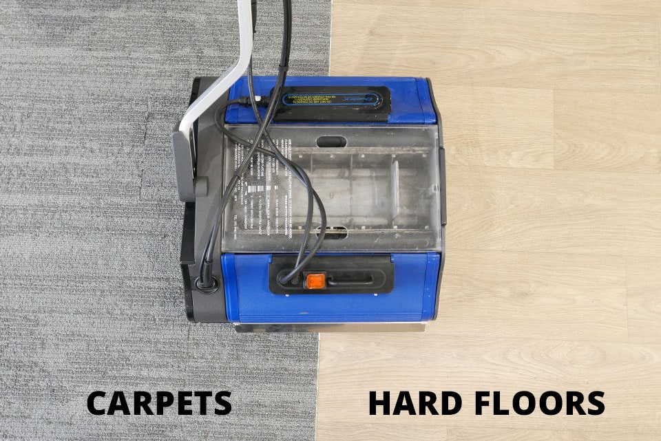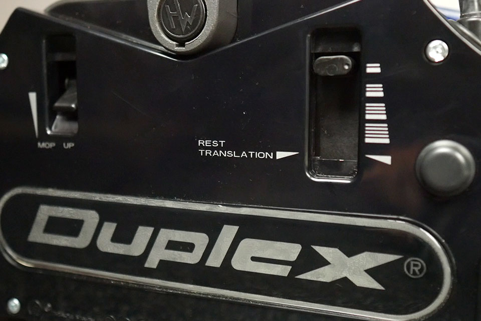 Duplex se vyznačuje jednoduchými zapuštěnými ovládacími prvky pro okamžité přizpůsobení různým podlahovým povrchům. Po stisknutí spínače vám Duplex umožní „drhnout“ roztok, důkladně promíchat čisticí tekutinu a poté se vrátit do režimu „sbírání“ pro dokončení čištění a sušení.