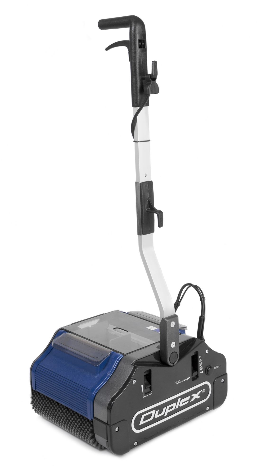 Duplex se vyznačuje jednoduchými zapuštěnými ovládacími prvky pro okamžité přizpůsobení různým podlahovým povrchům. Po stisknutí spínače vám Duplex umožní „drhnout“ roztok, důkladně promíchat čisticí tekutinu a poté se vrátit do režimu „sbírání“ pro dokončení čištění a sušení.